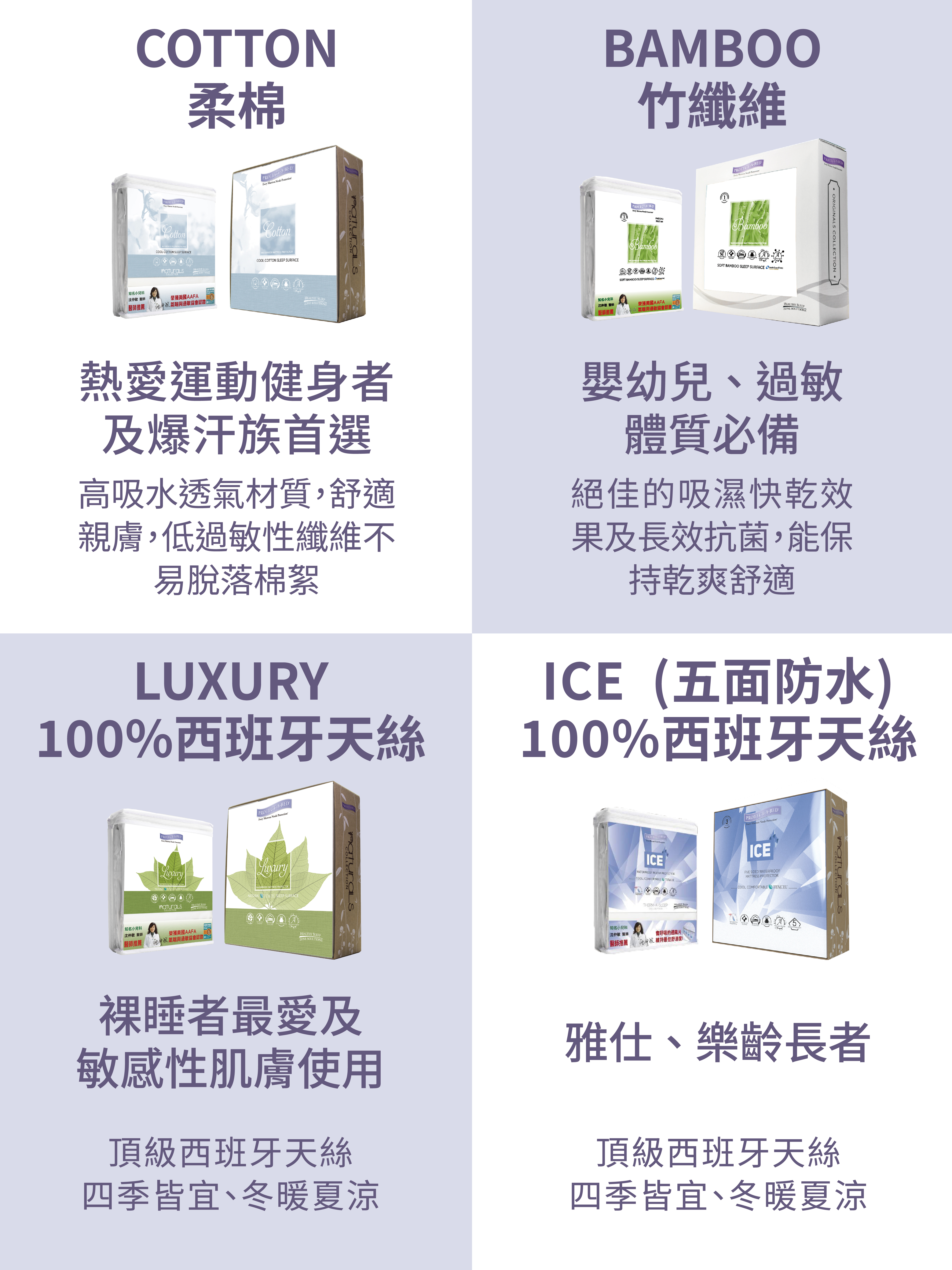 Q15. 寢之堡保潔墊種類材質如何選擇?