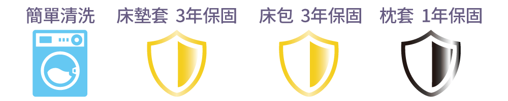 本網站購買提供保固:床墊套3年,床包3年,枕套1年